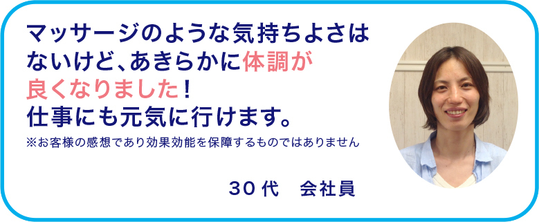 マッサージのような気持ちよさはないけど、あきらかに体調が良くなりました! 仕事にも元気に⾏けます。
